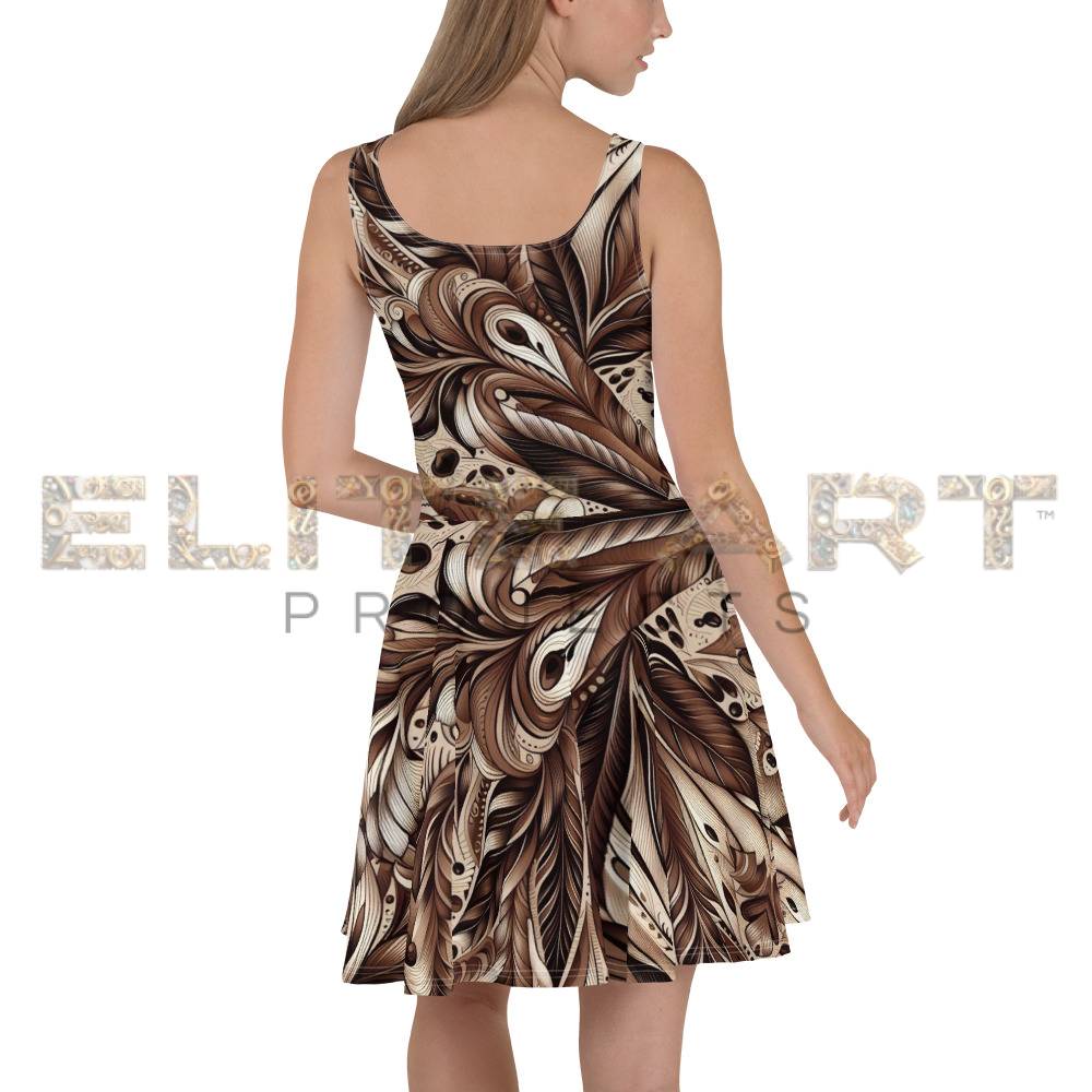 Discover the perfect blend of sophistication and style with the Espresso Bean Flowers Blooming Grace Collection. This sleeveless skater dress, meticulously crafted by Alfred Fashion Designer Elite Art Project, is designed to make a lasting impression.